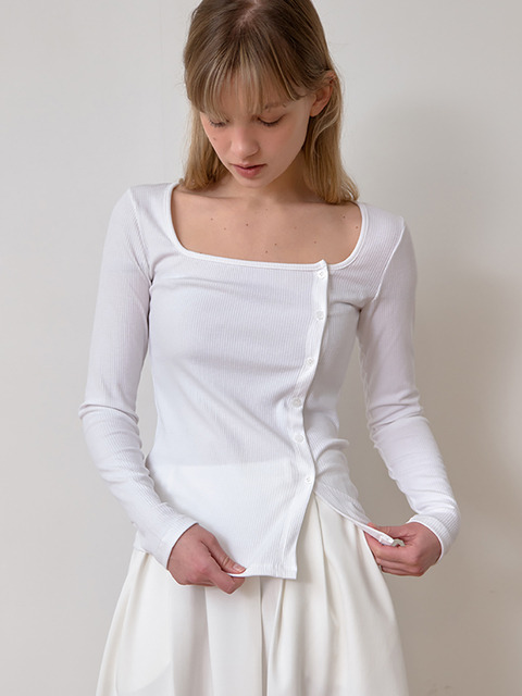 [라미네즈] 스퀘어 오픈 버튼 티셔츠 - 아이보리