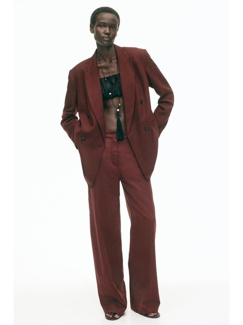 [에이치엔엠] 리넨 블렌드 팬츠 다크 브라운 1328239001