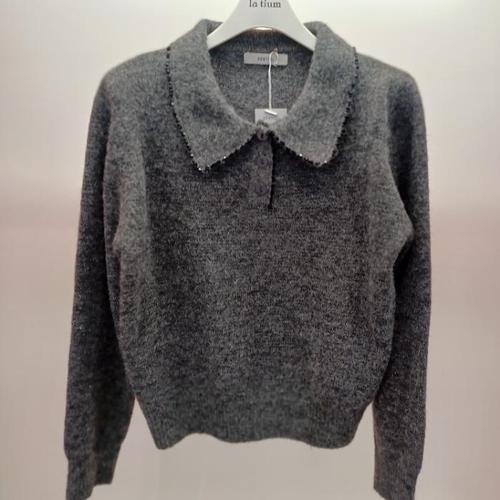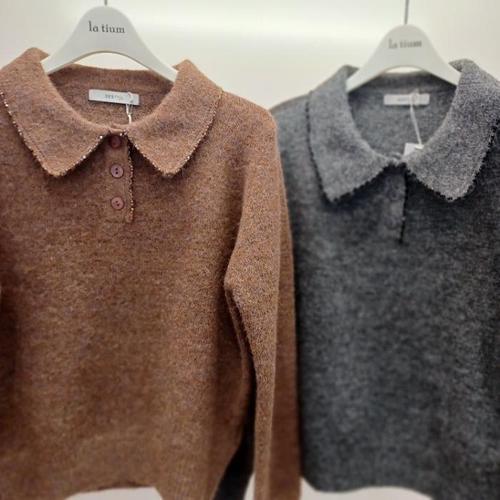 [라티움]Destijl HC06 크롭 스판 울느낌 앞반오픈 비즈 배색 비비즈 카라 니트티 D2611sw11 (44878547)