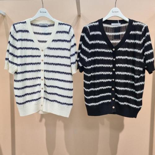 [라티움]Destijl HC34 신축성좋은스트라이프브이넥반팔 짧은여름니트 D2623cd01 (47339051)