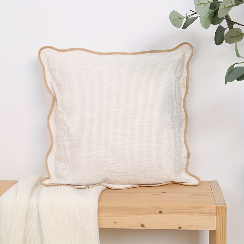 TEMU 1pc 초식 스칼로프 던지기 베개 커버, 18" x 18" - 부드러운 피치와 러스트릭 브라운 보더, 거실 소파용 장식적인 사각형 쿠션 케이스, 미학적인 펑키 액센트 베개, 폴리에스터, 지퍼 클로저, 손세탁만, 장식