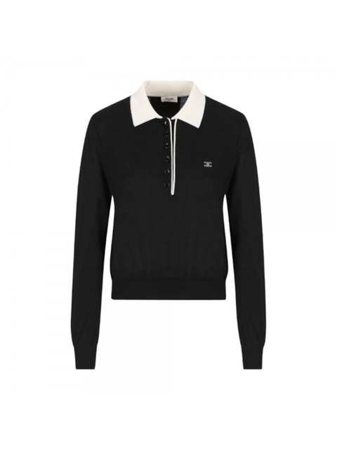 [셀린느] [셀린느] 26SS 트리오페 자수 캐시미어 폴로 니트 블랙/화이트 RX0FD0W27 38OF