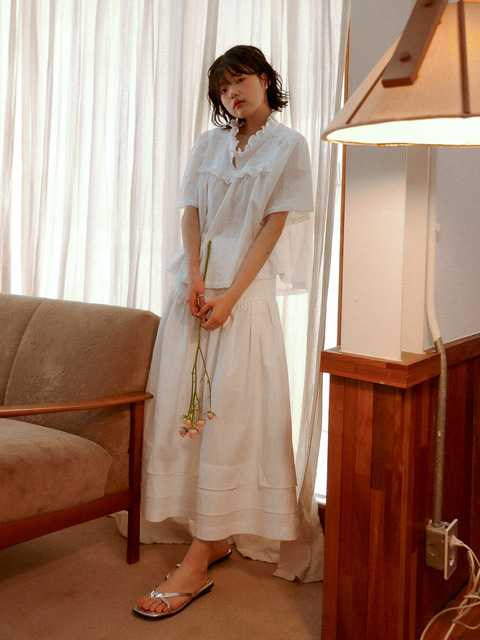 [오수] 오수 매그놀리아 셔링 스커트, 화이트