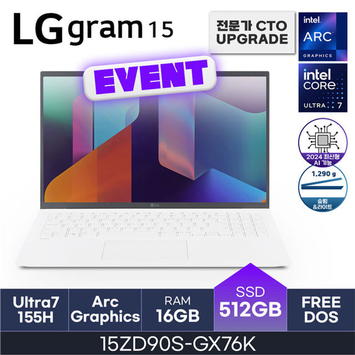 LG전자 LG전자 2024 그램15 15ZD90S-GX76K / (16GB/512GB/FreeDOS) HMC