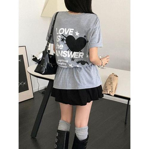 [니까]남녀공용 데이오프 프린팅 오버핏 20수 라운드 반팔 티셔츠