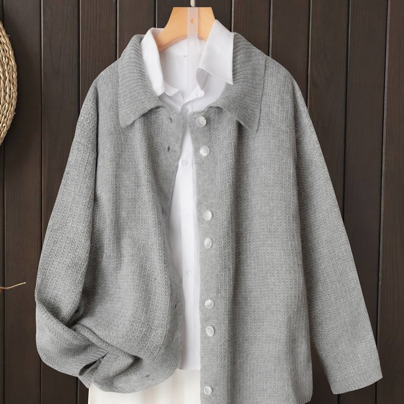 TEMU 여성용 포근한 회색 가디건 - 캐주얼 긴팔 지퍼업 스웨터, 버튼 디테일, 루즈핏, 중간 신축성, 가을/겨울에 적합, 캐주얼 겨울옷 | 버튼 가디건 | 구조, 스웨터 가디건