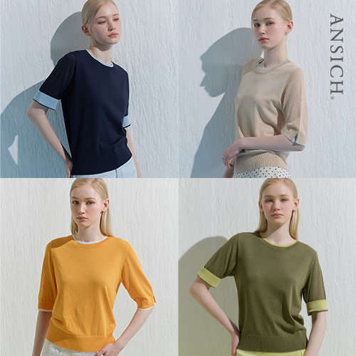 [안지크] 26SS 썸머 컬러블럭 레이어드 니트 풀오버 4종