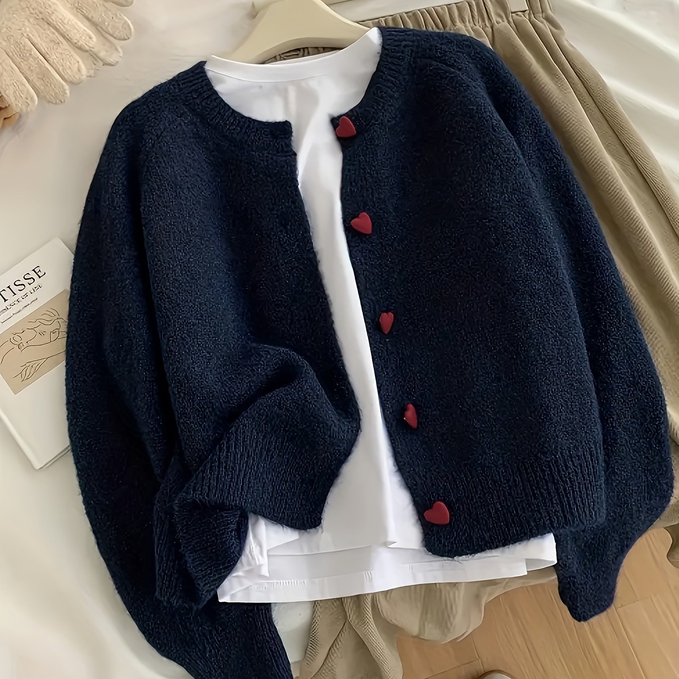 TEMU 하트 모양 단추와 라운드넥이 특징인 멀티 컬러 긴팔 여성용 가디건. 여유로운 디자인으로 봄, 가을, 겨울에 완벽합니다. 여성에게 이상적인 생일 선물입니다.