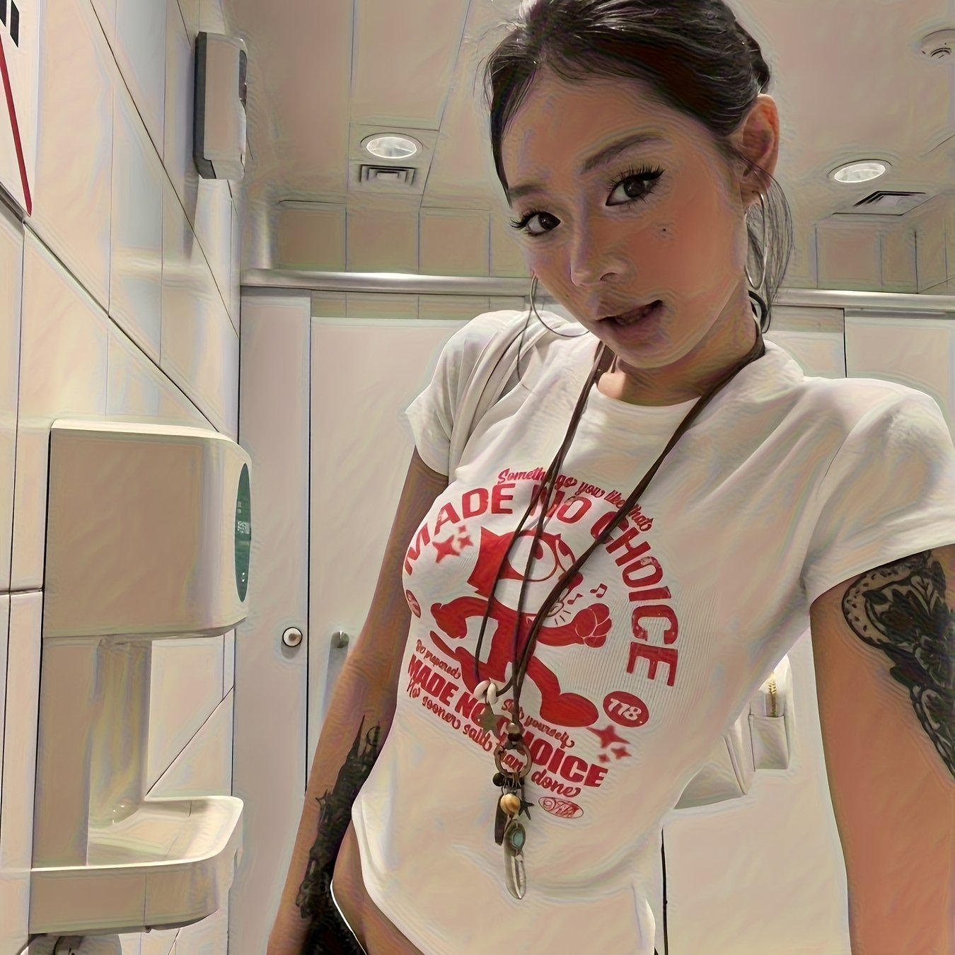 TEMU 여성 여름 반팔 유럽풍 레트로 프린트 디자인, 숄더, 슬림핏 티셔츠, 핫, 다용도 캐주얼 탑