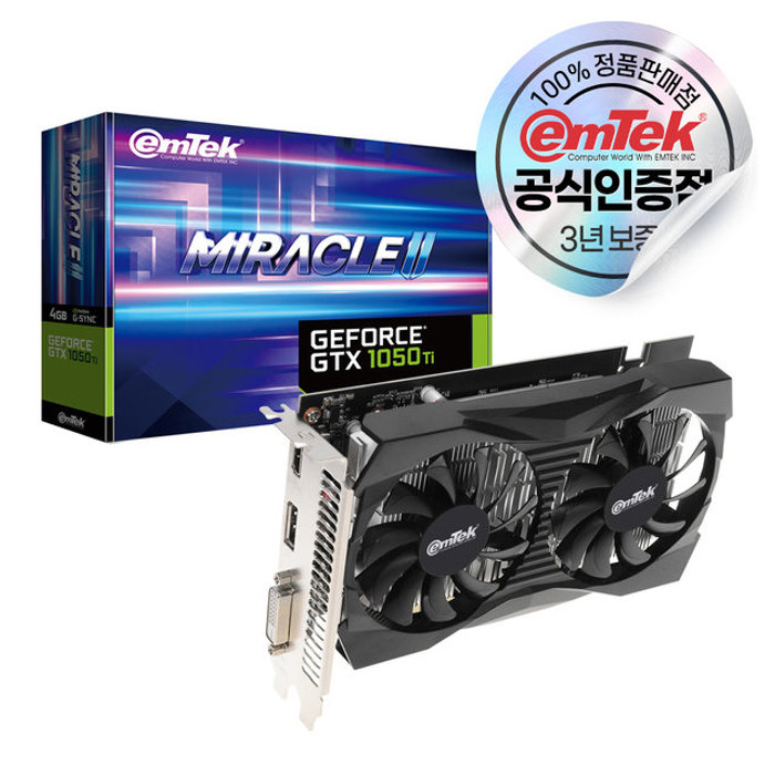 이엠텍 이엠텍 지포스 GTX 1050 Ti MIRACLE II D5 4GB [에어캡 안전포장]