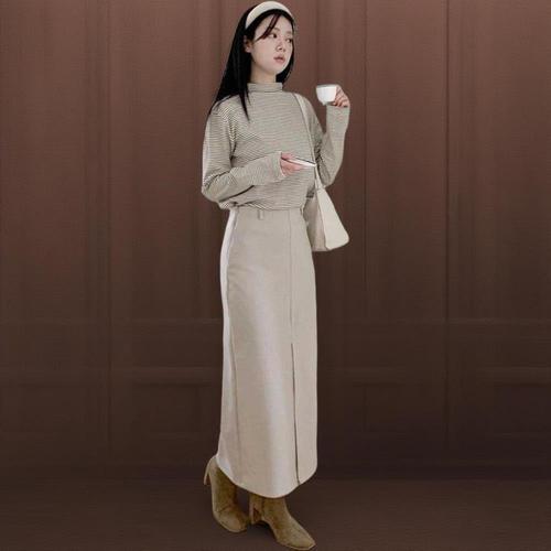 화지나무 오피스룩 H라인 뒷트임 밴딩 롱 스커트
