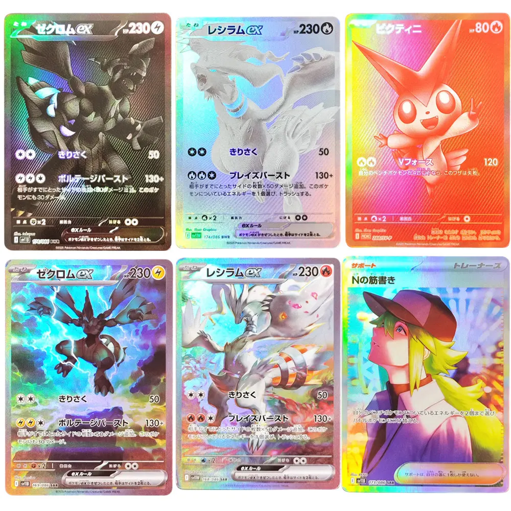 포켓몬 일본 호일 프록시 카드 Sv11W 화이트 플레어 Sv11B 블랙 볼트 Reshiram Zekrom Ex Victini 288/sv-P 게임 컬렉션 카드 장난감