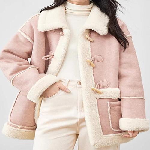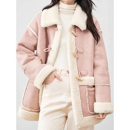 ANYOU 귀여운 양털 카라 스웨이드 무스탕 자켓 루즈핏 데일리 캠퍼스룩 겨울 아우터