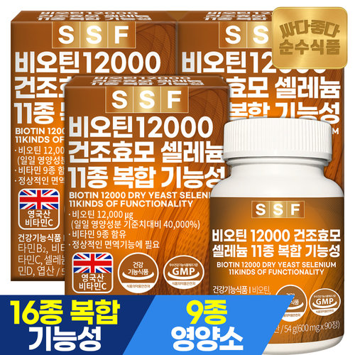 순수식품 비오틴 12000 3박스(270정) 9개월분 셀렌효모 셀레늄