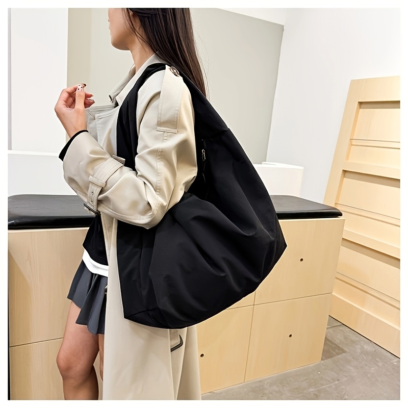 TEMU 순수 컬러 나일론 원단 싱글숄더백 지퍼 레이지 윈드 캐주얼 다용도 가방 여성용 출근 대용량 크레센트백