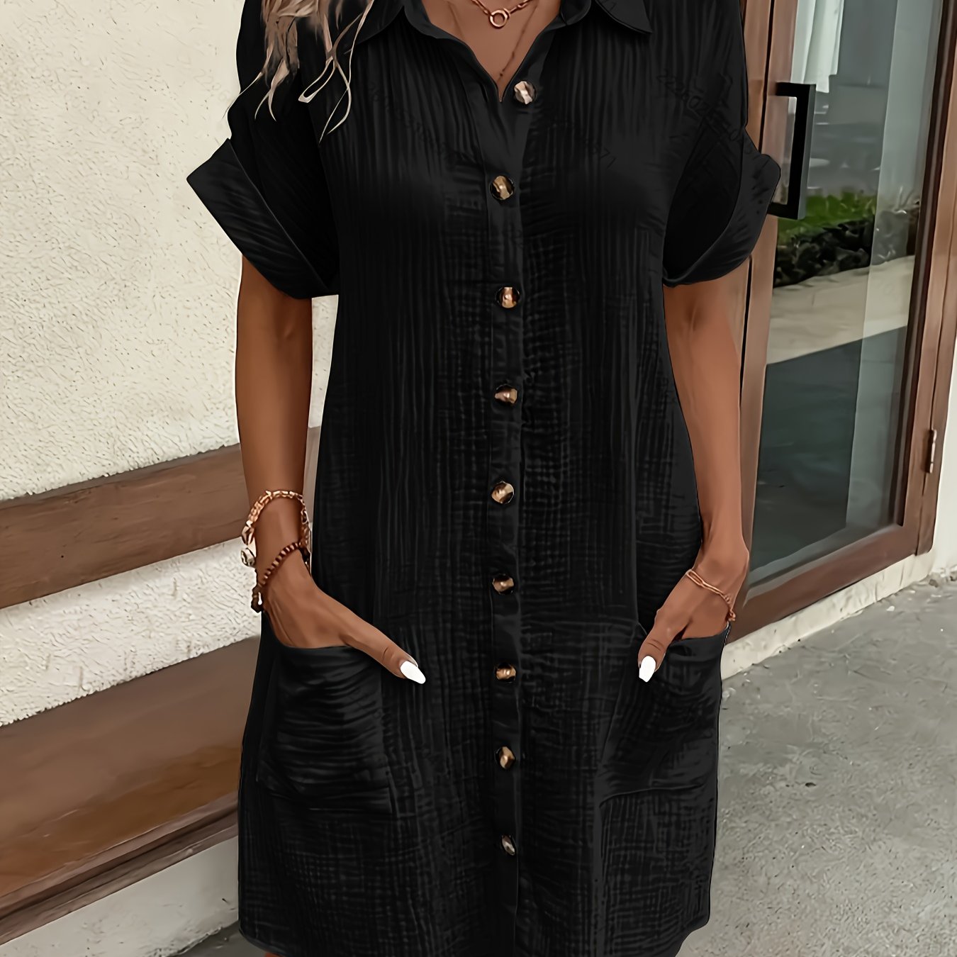 TEMU 심플한 솔리드 컬러 셔츠 드레스, 통기성 좋은 소재, 라펠 칼라와 정돈된 버튼 배치로 빈티지 매력 추가