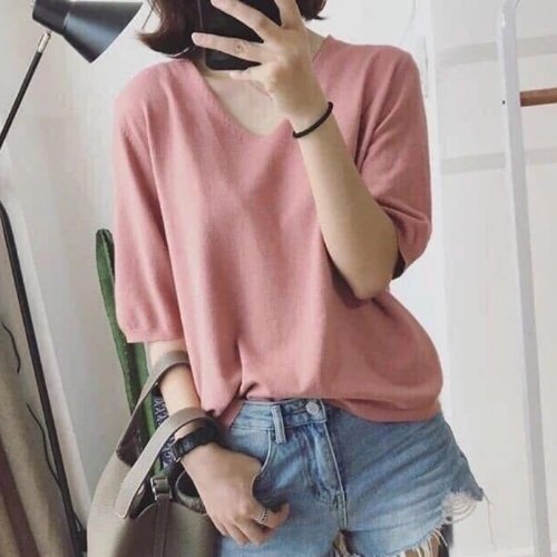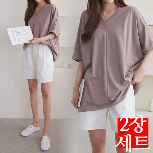 [2장세트] E027 IL 여자 반팔 티 가오리 오버핏 브이넥