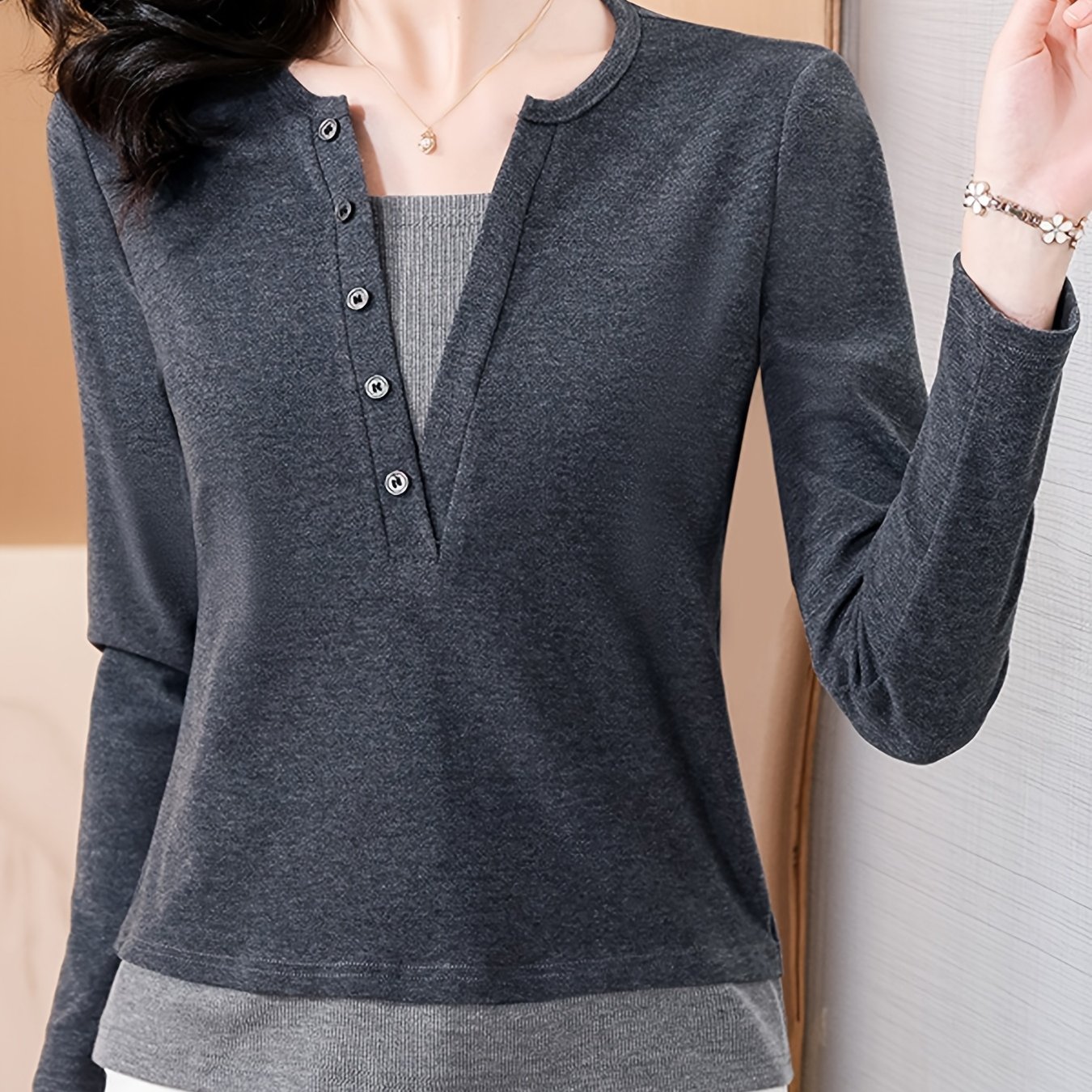 TEMU 여름/겨울 신상 여성용 긴팔 V넥 티셔츠, 스타일리시하고 착용감 좋음, 레이어링에 완벽