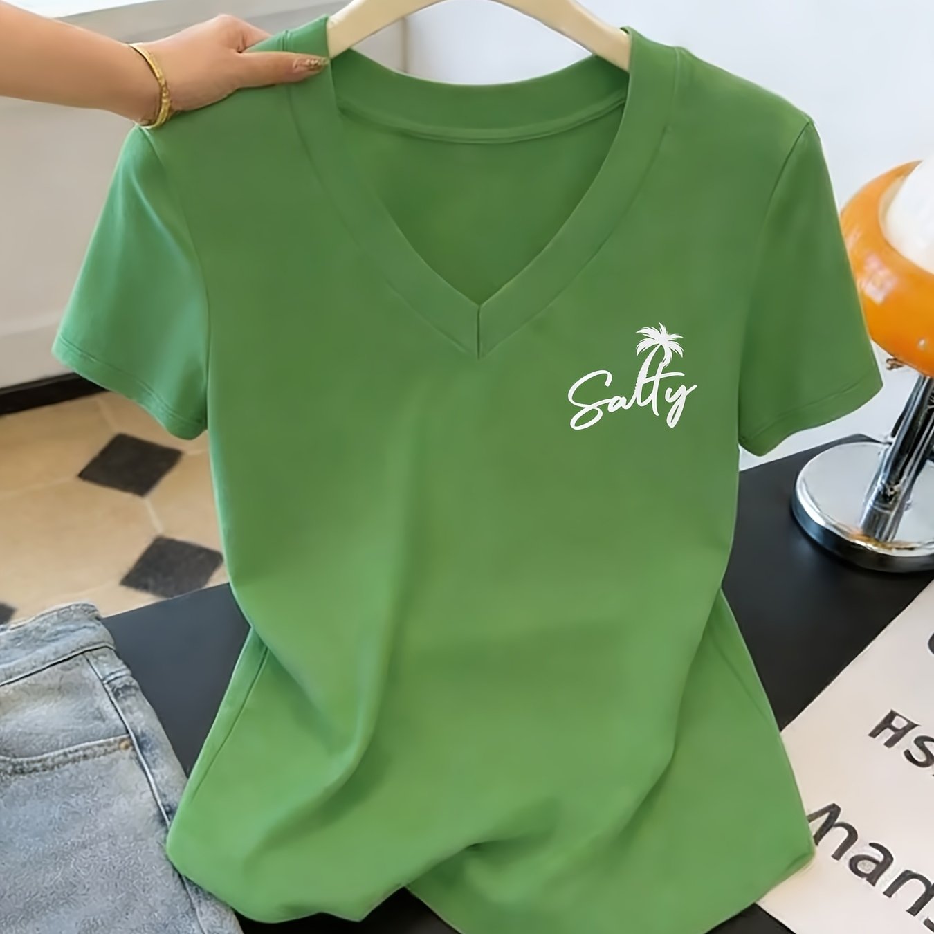 TEMU 티셔츠, 반팔 V넥 캐주얼 상의, 여름 및 봄 여성 의류