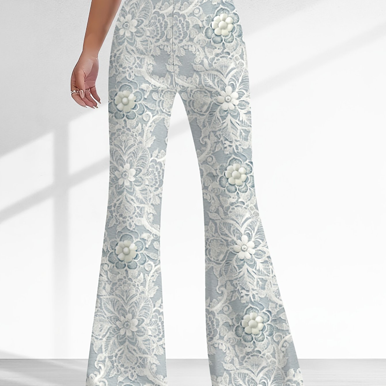 TEMU 여성용 스트레치 플레어 팬츠 - 디지털 프린트 패턴, 봄 여름 가을 프린팅 스트레치 캐주얼 긴 바지, 캐주얼 및 스포츠웨어용 통기성 원단, 세탁기 사용 가능 - 패션 프린트 레깅스