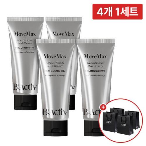 [4개 1세트] 비액티브 무브맥스 관절크림 MSM 고함량 스포츠크림 100ml + 쇼핑백 4개