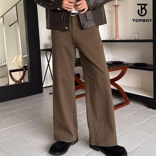 [탑보이]남녀공용 트윌 피치기모 커브와이드 반밴딩 코튼 팬츠 (LZ004)