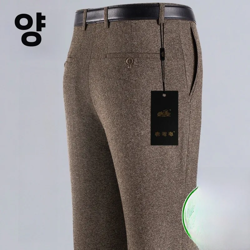 두꺼운 울 벨벳 남성 비즈니스 캐주얼 스트레이트 레그 팬츠 구김 방지 다림질 필요 없는 가을 겨울 롱 트라우저