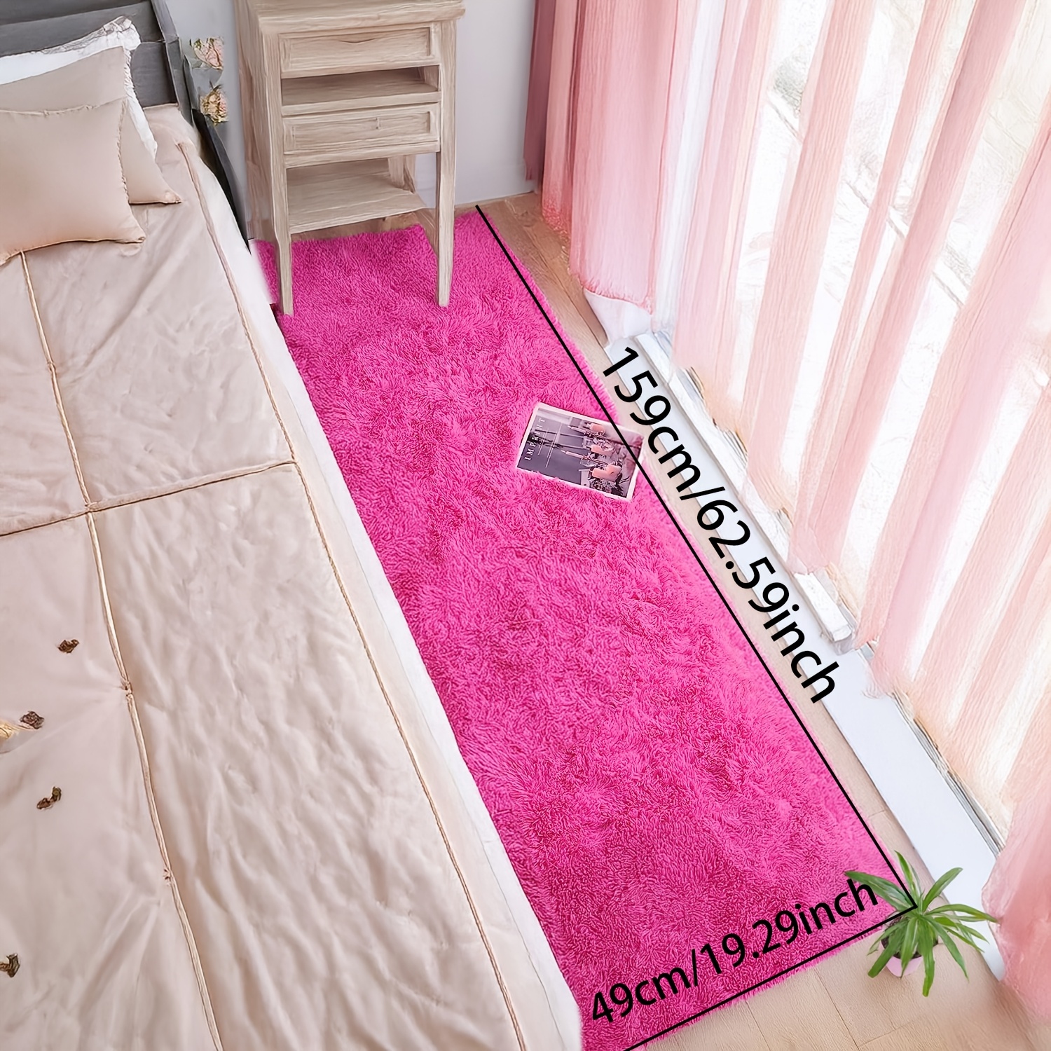 TEMU 1개, 스타일 노르딕 침실 플러시 베드사이드 매트/직사각형 스퀘어 매트, 거실용 모던 홈 데코, 커피 테이블, 소파 및 창문 앞에 적합, 귀여운 부드러운 파스텔 색상, 핑크 러너 홀웨이, 카펫 거실 러그