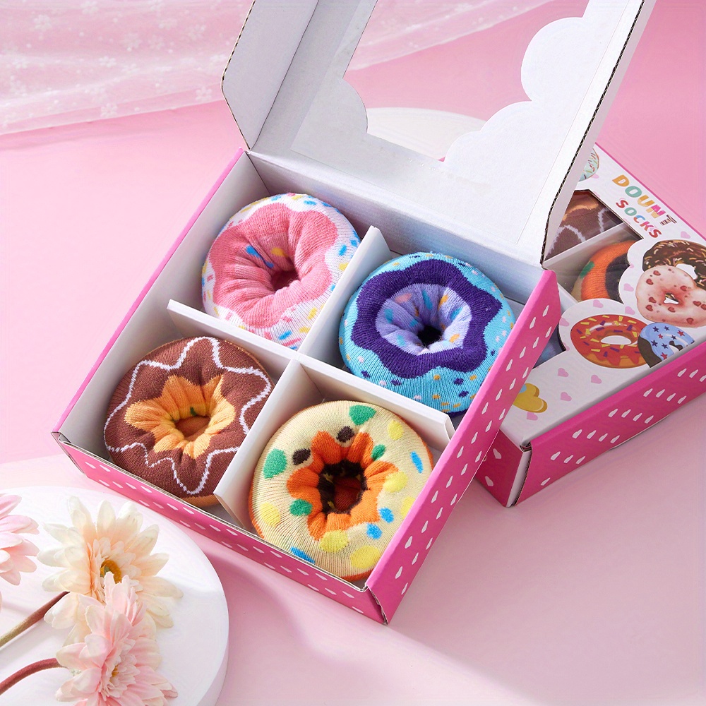 TEMU 4쌍 도넛 선물 상자 양말, 남녀 공용 파티 양말, 비즈니스 미드컬프 양말, 통기성 좋은 편안한 땀 흡수 양말, 출퇴근용, 여름 가을 축제 선물 상자 양말