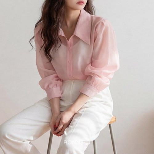 [보니제이]BONNIE J 봄 여름 비침 시스루 퍼프소매 블라우스 빅