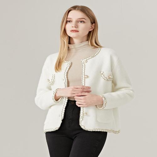 [보니스팍스]라운드 진주 버튼 다운 니트 여성 자켓 (XN4JK002L0)