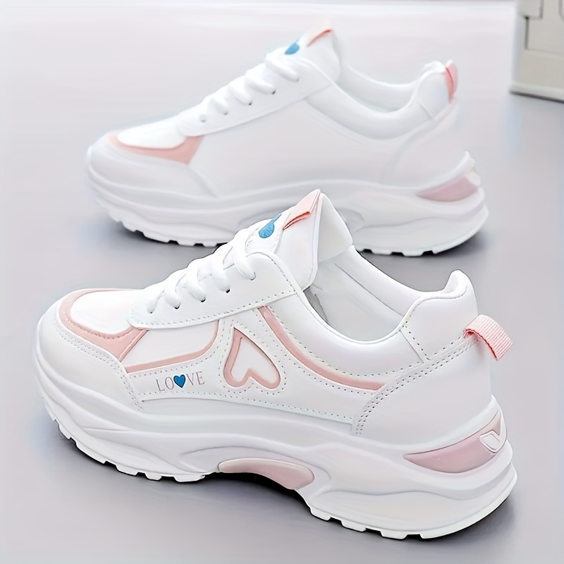 TEMU 여성용 하트 & 어퍼 & - 경량 레이스업 캐주얼 스니커즈 - 착용, 사무실, 일상용 - 내구성 & 쿠션 솔 (손세탁 가능), 여성 신발