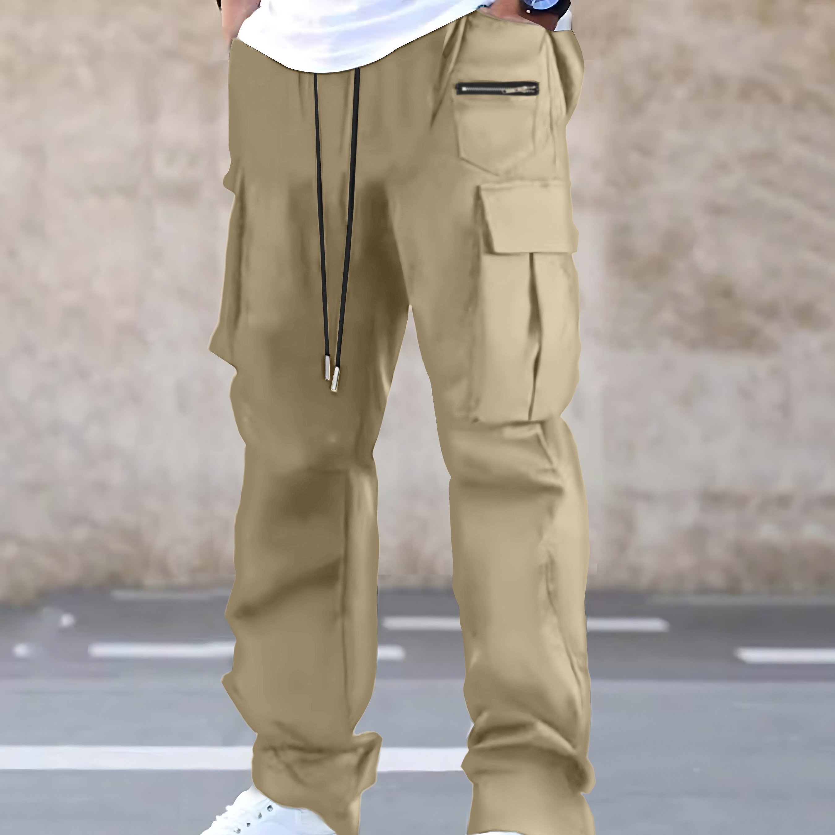 TEMU 남성 캐주얼 카고 바지 | 조절 가능한 드로스트링 허리, 다중 포켓, 루즈핏, 편안하고 통기성이 좋음, 봄/가을 시즌용