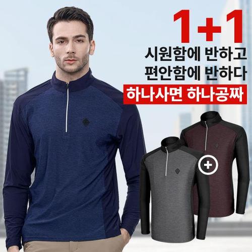 이지바이 1+1 빅사이즈 일급비밀 남성 기능성 아웃도어 상하배색 긴팔 집업 티셔츠(ST3OP2LT055M)