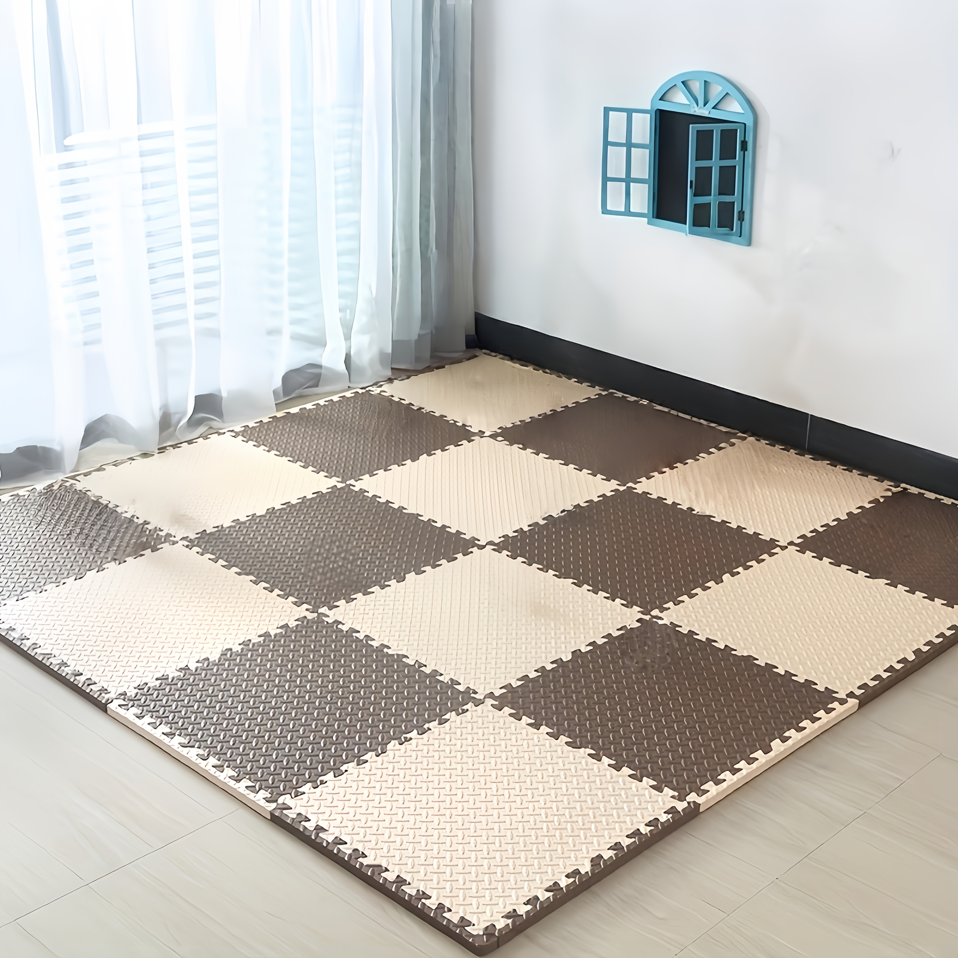 TEMU 16개 EVA 폼 매트 요가 및 체조용 매트는 야외 훈련, 가족 체육관, 실내 침실에 적합하며, 스팽글 잠금장치, 퍼즐식 조립, 미끄럼 방지, 방수 및 낙하 저항성 매트입니다