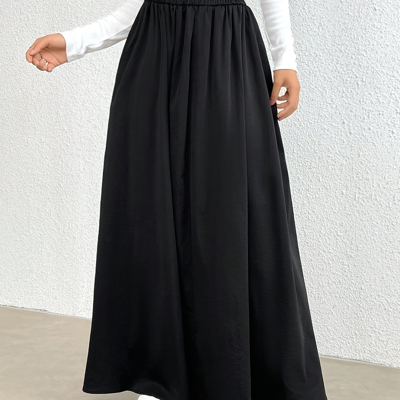 TEMU 여성용 솔리드 컬러 신축성 허리 스커트