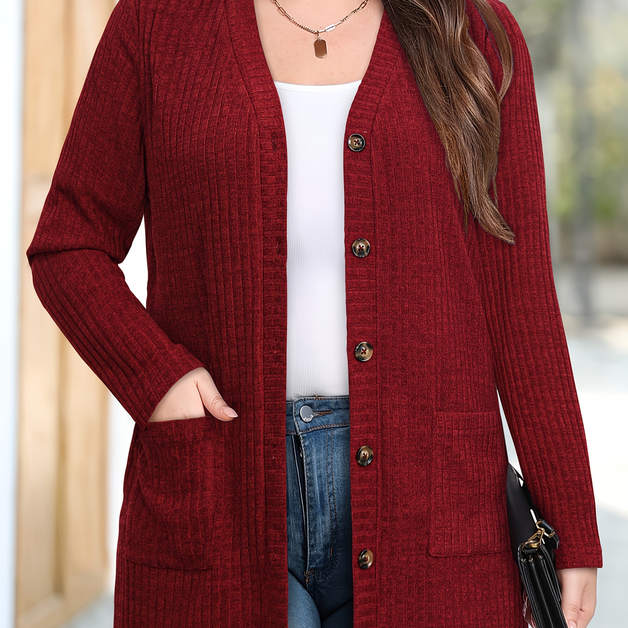 TEMU 여성용 스타일리시 따뜻한 카디건, 포켓이 있는 패브릭 소재