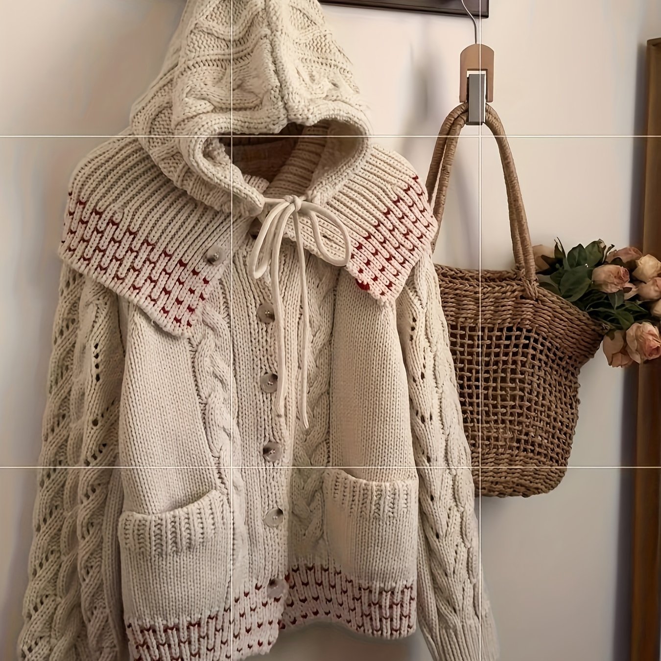 TEMU 여성용 케이블 카디건 긴팔 후드 버튼 프론트 스웨터 - 중간 스트레치 단색 가을 겨울 캐주얼 시크 아우터웨어, 후드 넥라인, 편안한 핏|가디건