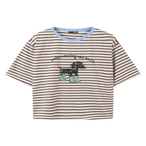 [BNX]스트라이프 배색 프린팅 반팔 티셔츠 (BY1TS012L0)