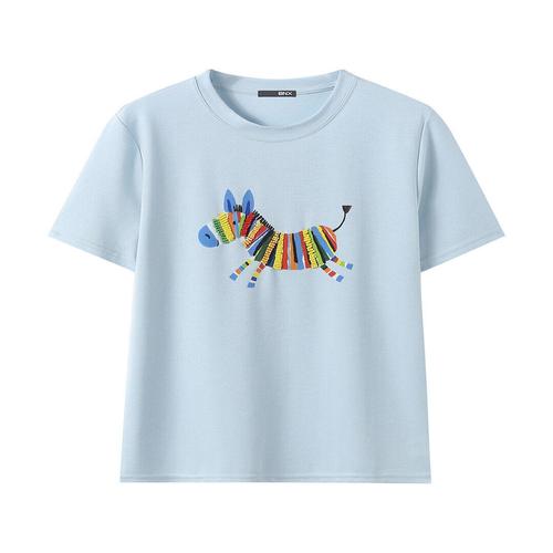[비엔엑스]컬러풀 애니멀 자수 반팔 티셔츠 (BY2TS016L0)