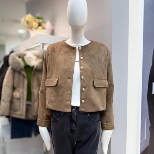 [더틸버리]페이크 스웨이드 라운드넥 크롭 재킷 MTS2N0JK511_DG