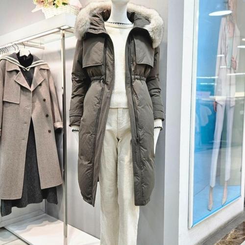 [더틸버리]폭스퍼 후드 롱 덕다운 점퍼MDTPCM2PD55W_DG