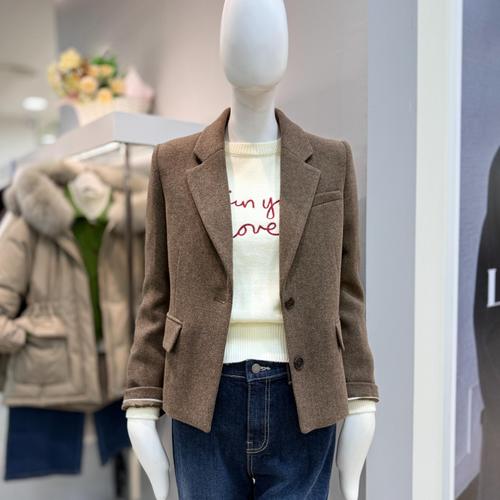[더틸버리]울 멜란지 투버튼 크롭 싱글재킷MTRAM0JK11W_DG