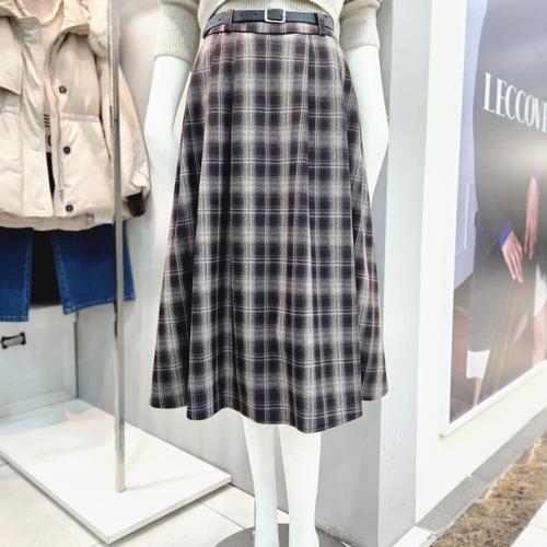 [더틸버리]체크 백밴딩 플레어 스커트 MTRCN0SK53W_DG