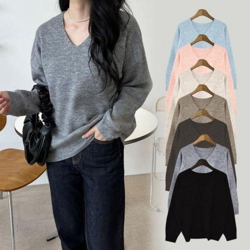 솔레일 여성용 소프트 스웨터 브이넥 루즈니트
