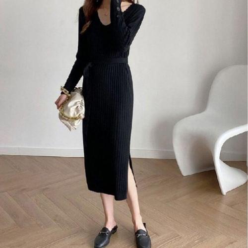 더모즈 / 단독 브이라인 니트 롱 원피스 3컬러