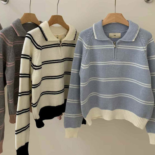 [엄지척]뽀얌 데일리 여자여름니트 골지니트 라인 브이 여성여_19680112_667501