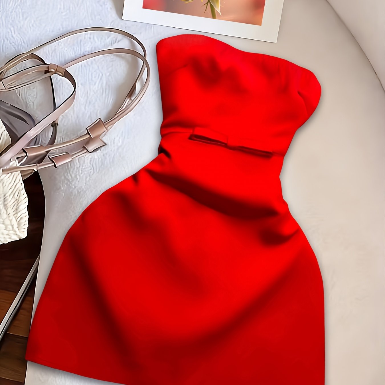TEMU 오프숄더 스트랩리스 미니 드레스, 리본 장식 | Y2K 스타일, 우아한 파티룩, 휴가, 파티, 외출, 크리스마스, 발렌타인데이, 홀리데이룩, 여성 의류