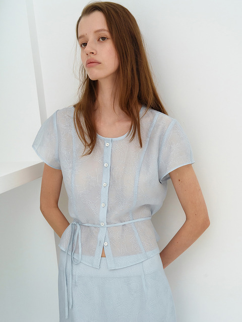 [오브베이지] GARDEN JACQUARD BLOUSE_PALE BLUE_OF1C2XBS02PAB