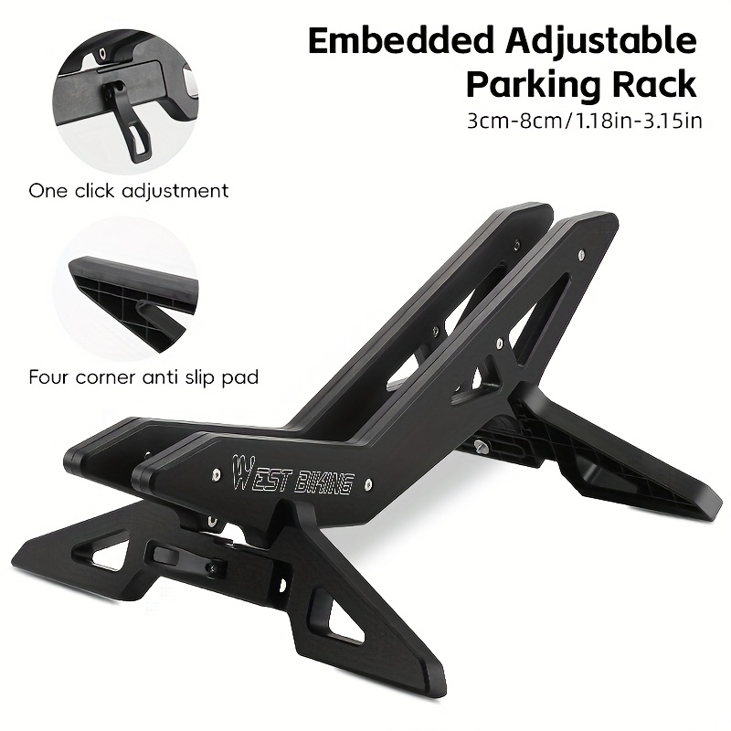 TEMU WEST BIKING 1개 조절 가능한 자전거 스탠드 ABS 내장형 산악 자전거 주차대 로드 바이크 MTB 사이클링 지지 자전거 액세서리 로드 및 산악 자전거용 조절 가능한 자전거 스탠드 블랙